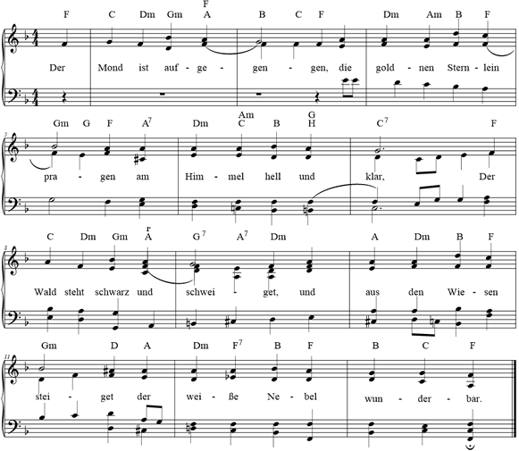 So legt euch denn, ihr Brüder, in Gottes Namen nieder; kalt ist der Abendhauch. Verschon uns, Gott, mit Strafen und lass uns ruhig schlafen. Und unsern kranken Nachbarn auch!